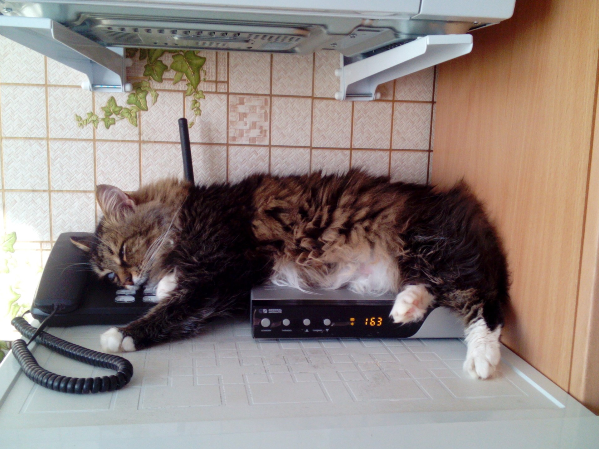 Kedi telefonda uyuyor