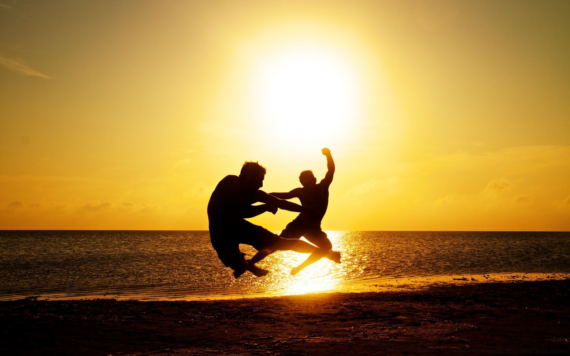 İki sporcu sahile atlıyor