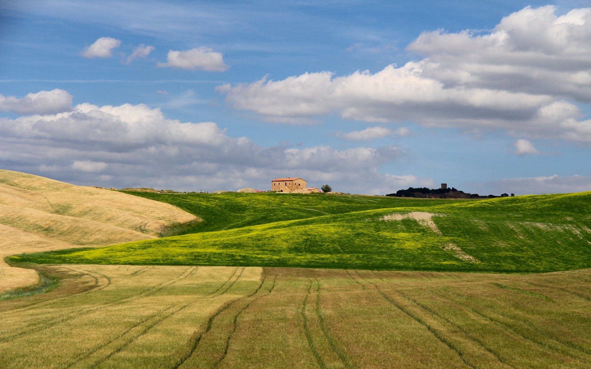 Kırsal manzara, gökyüzü ve tarla