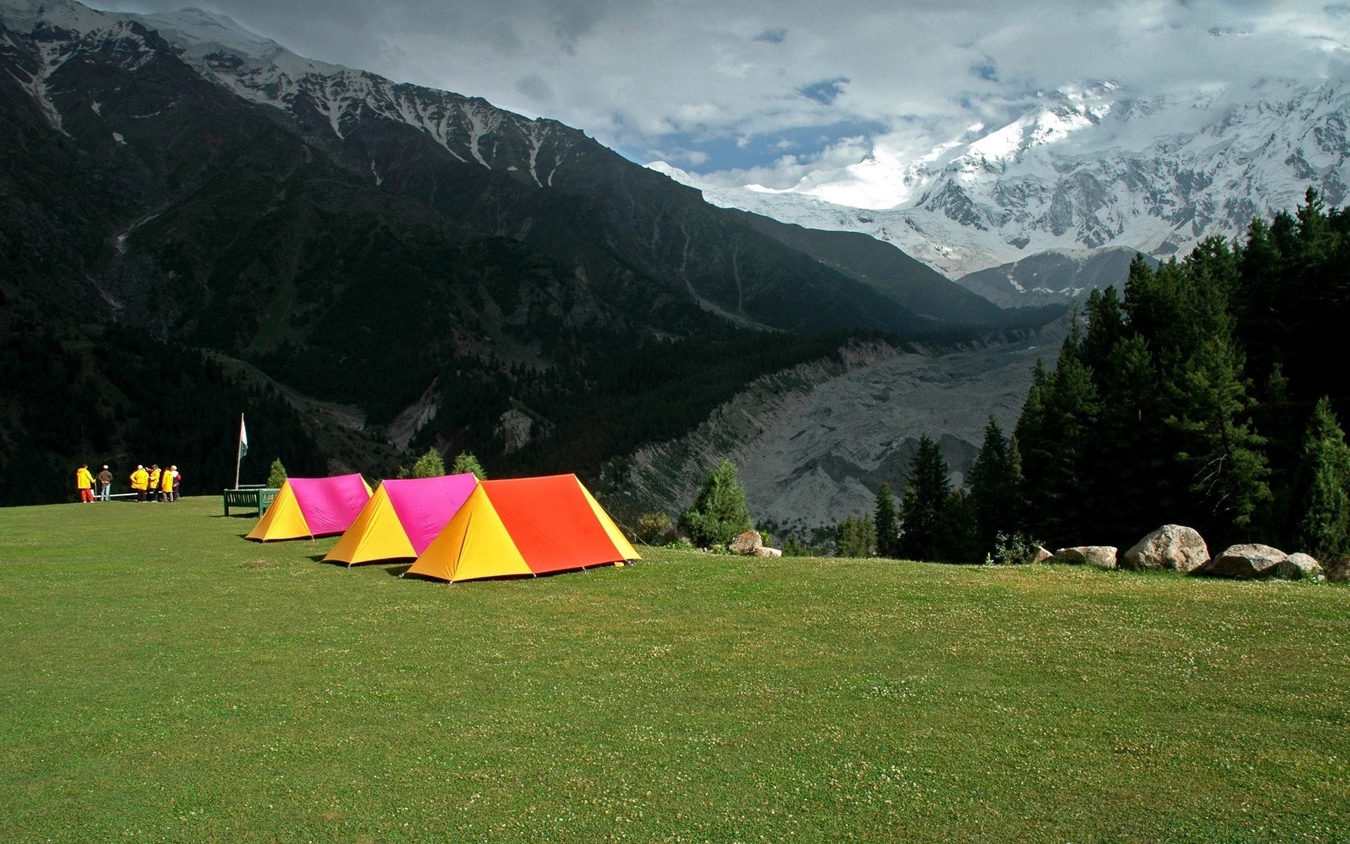 Çadır kampı ile dağ manzarası