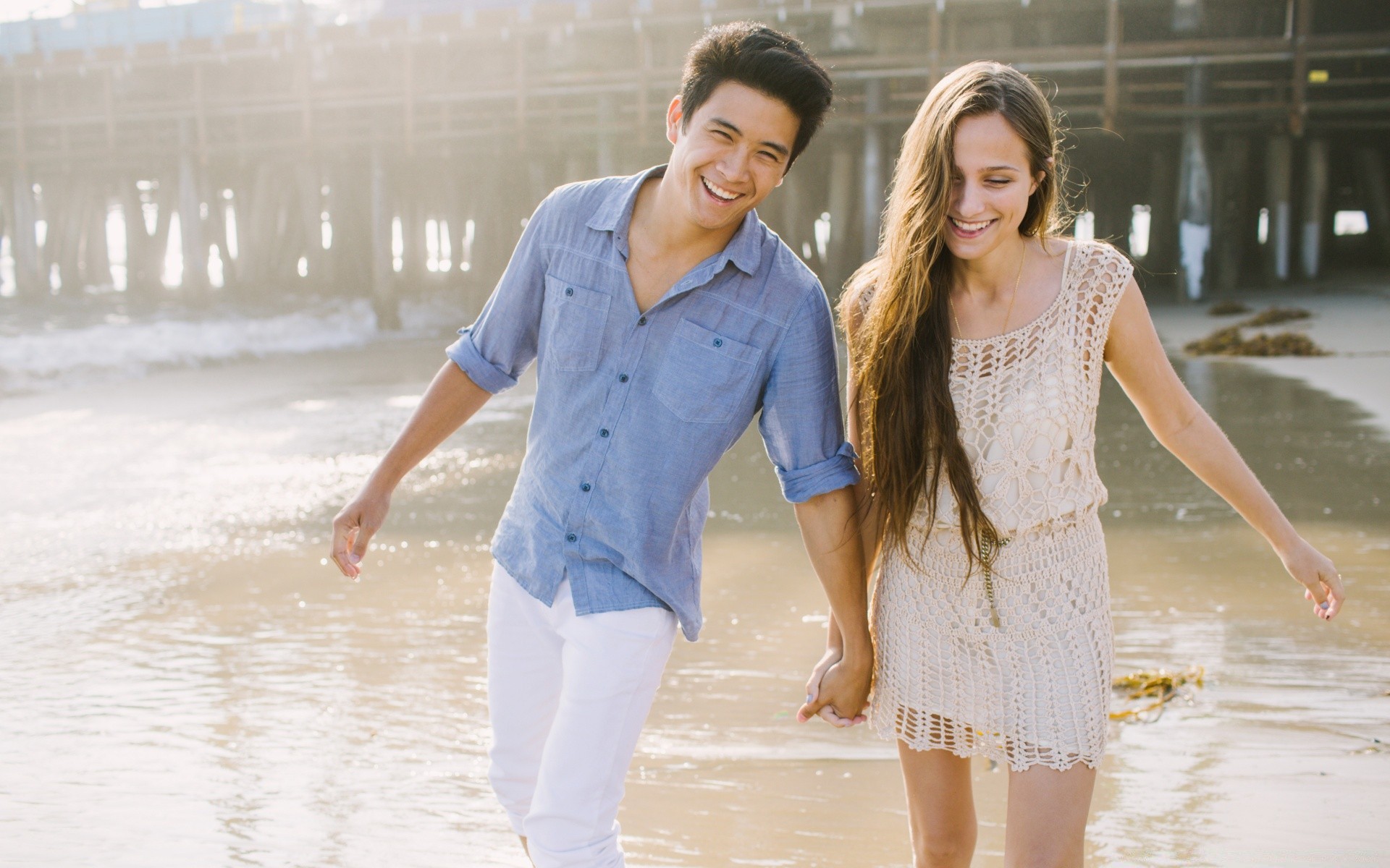 Beyaz elbiseli iki anime kahramanı, deniz yüzeyinin üzerinde havada süzülüyor